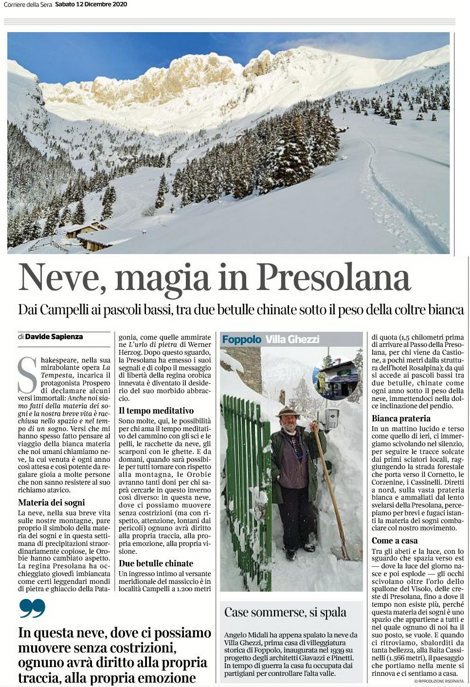 Ero certo che la materia bianca mi avrebbe donato orizzonti e forza per un nuovo racconto, oggi sul Corriere della Sera di Bergamo,